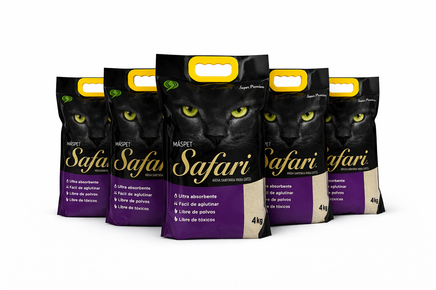 Arenas sanitarias MásPet Safari de alta absorción y productos de cuidado delicado. Soluciones pensadas para mantener la limpieza de tu hogar y el bienestar de tu felino.